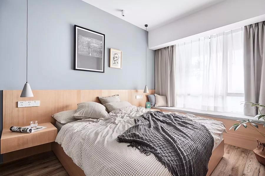 有2個(gè)臥室,還有1個(gè)小書房,布局真的很不錯(cuò)。整個(gè)家大量搭配了原木家具,清新又自然,文藝又有格調(diào),好喜歡這種休閑又放松的家居氛圍。很多人問我客廳刷什么顏色的乳膠漆好,我覺得淺灰色不錯(cuò),客廳采光特別的給力,好喜歡休閑飄窗的設(shè)計(jì),視野十分開闊,看書休憩都特別的舒服。淺灰色調(diào)不會(huì)顯得過于沉穩(wěn),在布藝中加些暖色,會(huì)更顯休閑溫馨感。軟裝搭配細(xì)節(jié)放大看一看,哈哈,質(zhì)感真的不錯(cuò),黃色抱枕真的超愛了!搭配個(gè)小邊幾,擺上綠植,清新又養(yǎng)眼,裝修的時(shí)候墻面別忘了預(yù)留插頭,平時(shí)充電會(huì)更方便些.主臥的采光也特別棒,整個(gè)空間氛圍清新又自然。很喜歡床頭木質(zhì)護(hù)墻板的設(shè)計(jì),和臥床、床頭柜融為一體,十分的協(xié)調(diào)。廚房雖然面積不大,但也打造出U型布局,動(dòng)線合理,操作方便。很喜歡這種時(shí)尚中融入清新色調(diào)的搭配了。冰箱也有了歸屬感!