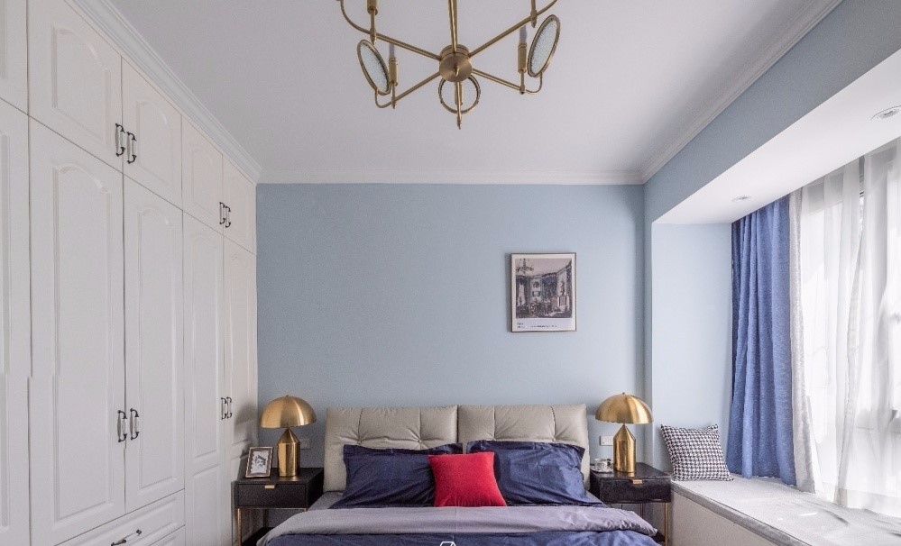 為了讓臥室不那么呆板,選擇了一副古典裝飾畫,用不對稱的方式打破空間的平衡感,從而使空間更有戲劇性。。