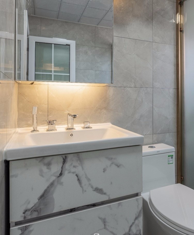 衛(wèi)生間采用干濕分離,大理石花紋凸顯輕奢主題。